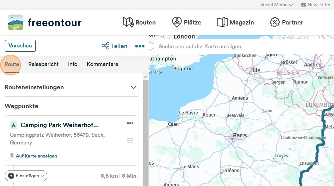 To do this, click on the "Route" section in the edit mode of the route.